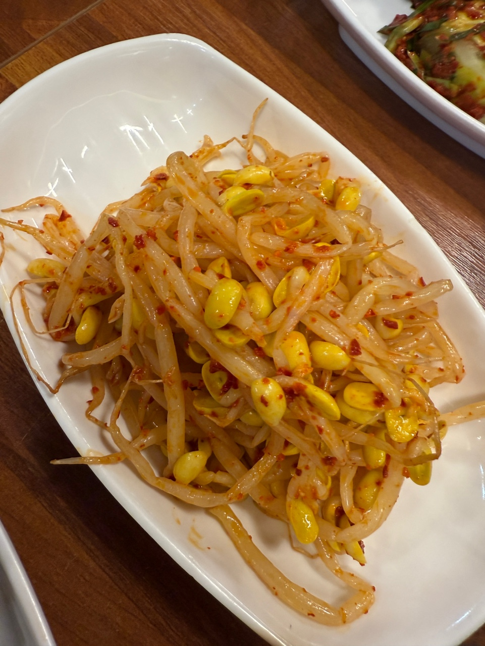 밑반찬으로는 된장풋고추 콩나물 오이소박이 묵 열무김치 총각김치 배추김치 파채가 나왔어요.