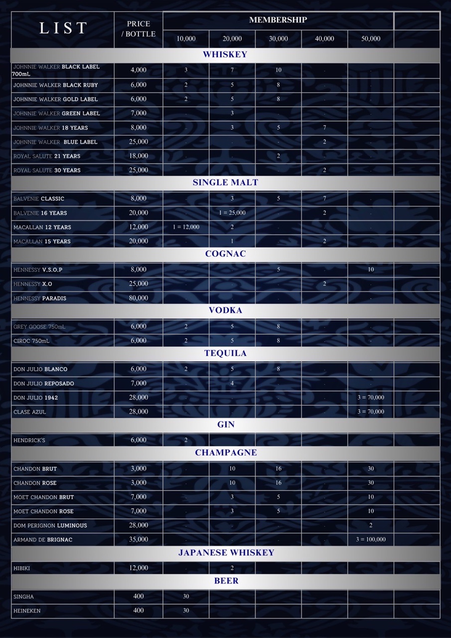 위스키,싱글몰트,샴폐인,보드카,소주,맥주 여러가지의 술이 있어요.