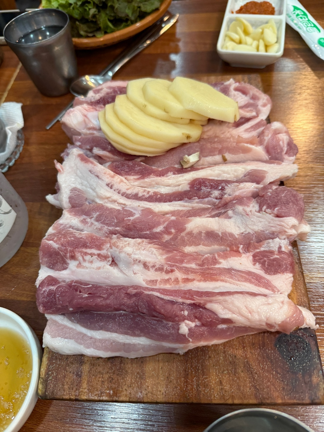 주문한 삼겹살이 나왔어요. 3인분 입니다. 양이 엄청많죠?